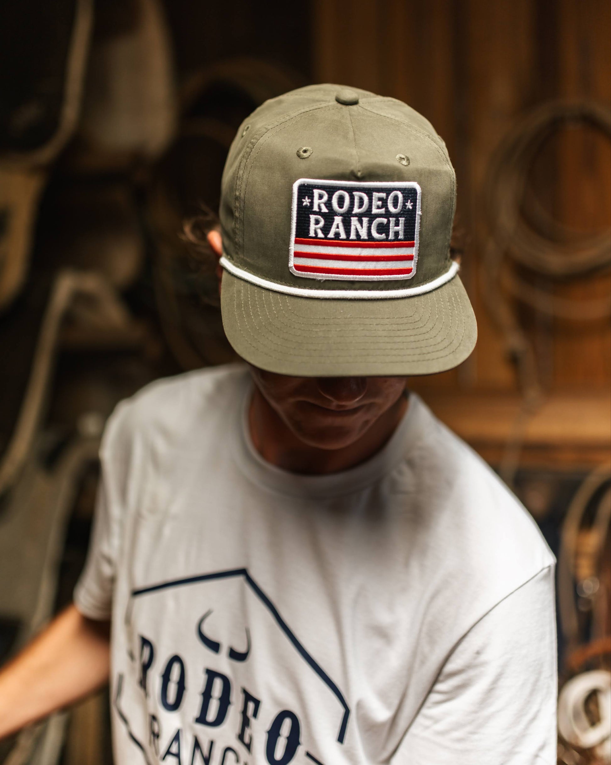 Login to view price.Rodeo Ranch Flag Golf Hat in olive