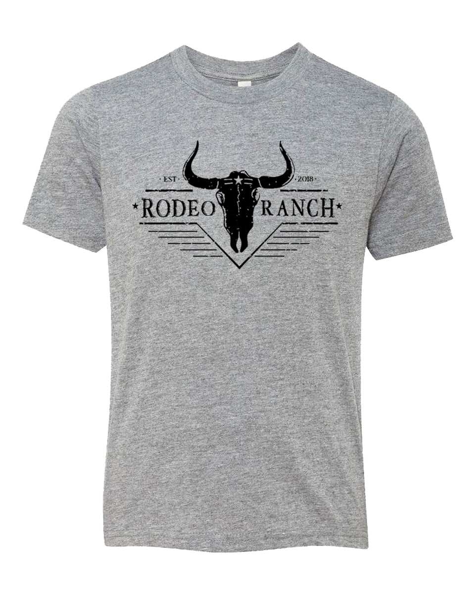 Login to view price.The Kids Western Short Sleeve Shirt by Rodeo Ranch features a unisex fit body in heather grey with black screen printed art.
