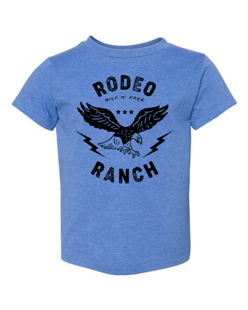 Login to view price.The Toddler Eagle Shirt by Rodeo Ranch features a toddler fit body in indigo with black screen-printed art.